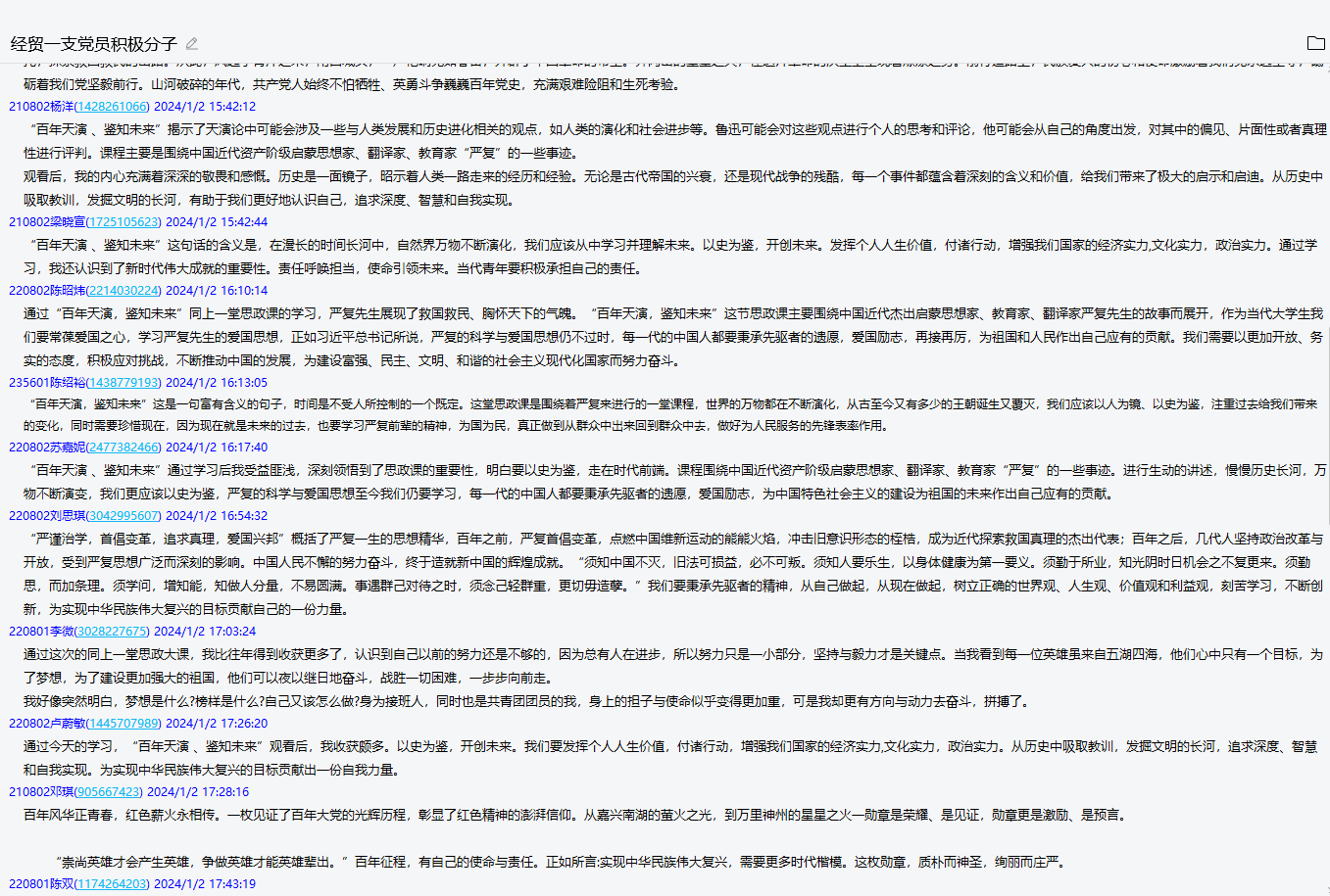 为确保此次思政课的学习效果,九游体育官网党总支结合各支部实际,通过支部、班级集中收看及个人自主收看相结合的方式,共同学习“百年天演,鉴知未来——福建省大中小学同上一堂思政课”,并展开积极交流讨论。此次学习活动参与人数达1166人次。