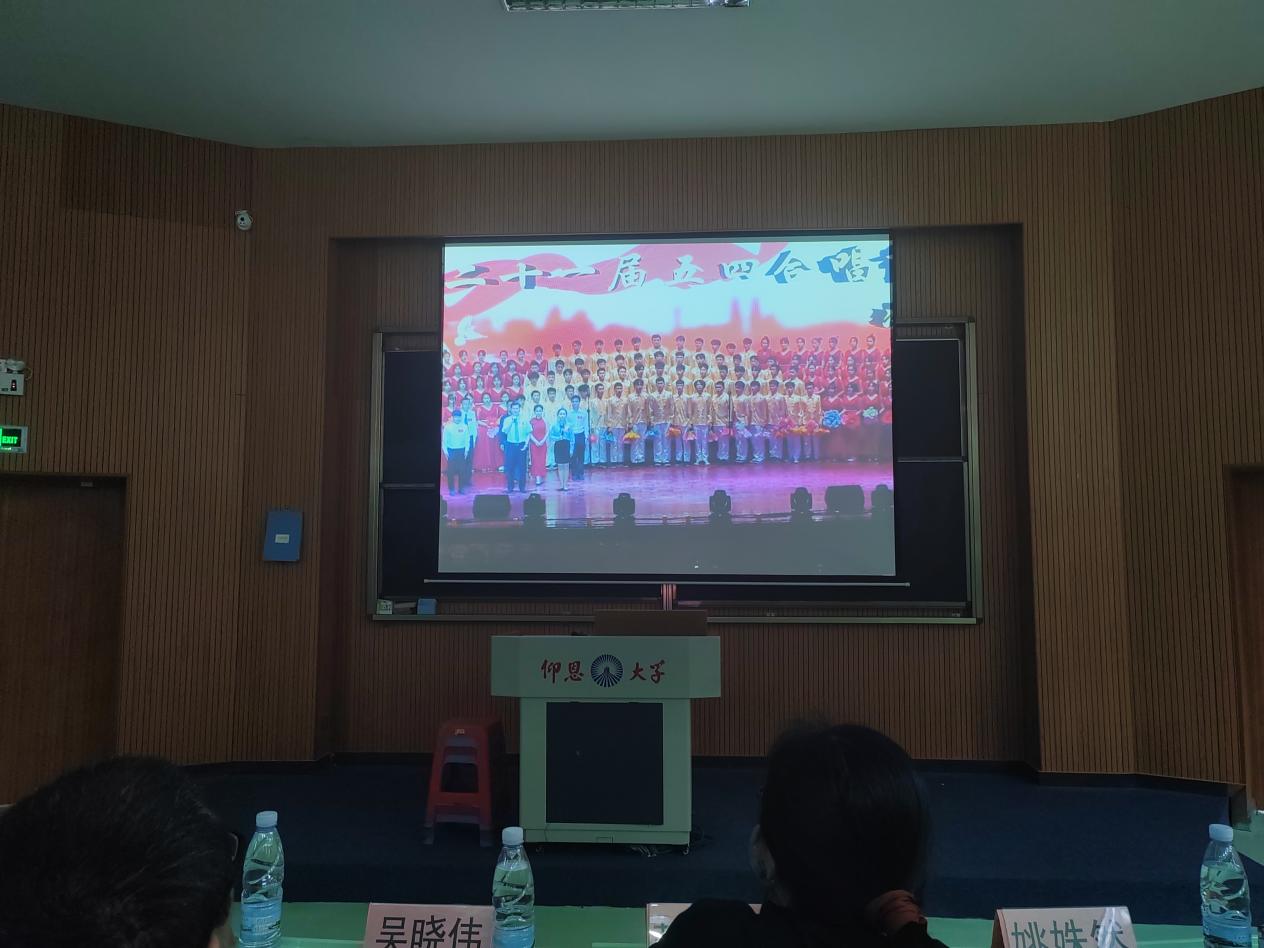 在大会上,主持人向九游体育学子们展示了往届五四合唱优秀队伍的视频以及优秀成果,以此激励更多同学踊跃参与。随后由九游体育吴晓伟老师发言,分享宝贵经验,鼓励大家积极参与。