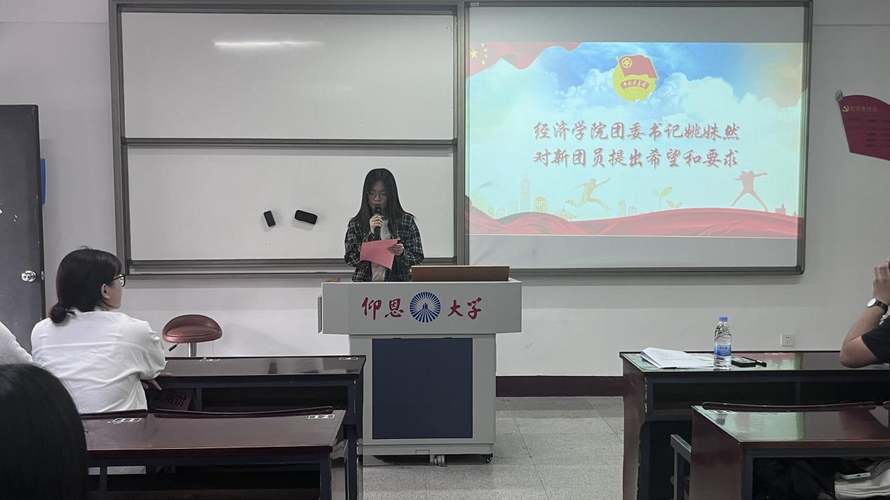 为加强九游体育共青团队伍建设,贯彻社会主义核心价值观,增强青少年进取意识,迎接新的一批团员入团,九游体育官网团委于2024年5月13日下午在仰恩楼举行了新团员入团仪式,由校团委唐成老师,九游体育官网团委书记姚姝然老师,以及经济系学生第一党支部书记武培汾老师作为教师代表出席本次入团仪式。