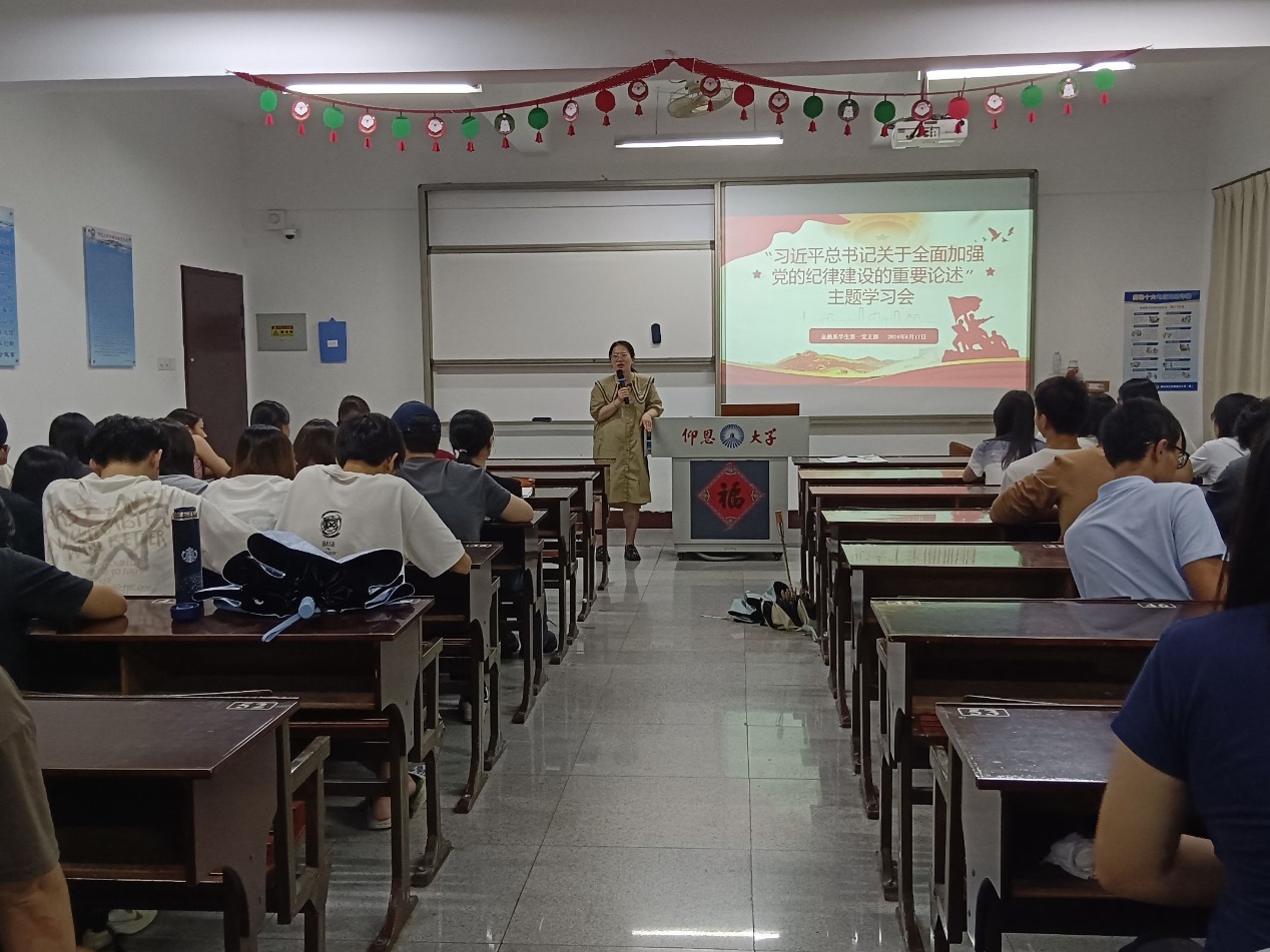 为了深入学习贯彻总书记关于全面加强党的纪律建设的重要论述,深刻把握党风廉政建设规律,2024年6月17日晚上7:30,九游体育官网金融系学生第一党支部在仰恩楼C2-305组织开展 “习近平总书记关于全面加强党的纪律建设的重要论述”主题学习研讨会。支部书记何丽玲老师、支部全体党员及各班积极分子代表参加了此次学习会。