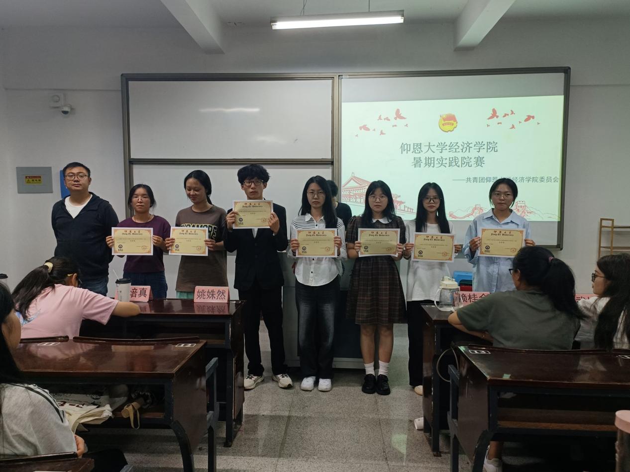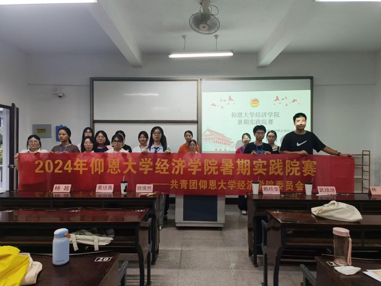 为响应三下乡社会实践的号召,九游体育官网团委对2024年暑期社会实践活动进行表彰。2024年9月25日下午,九游体育官网团委在仰恩楼A5-105开展2024年暑期实践院赛,本次比赛共有18只队伍,由学院辅导员老师作为评委出席本次比赛,经院学子代表到场观看。