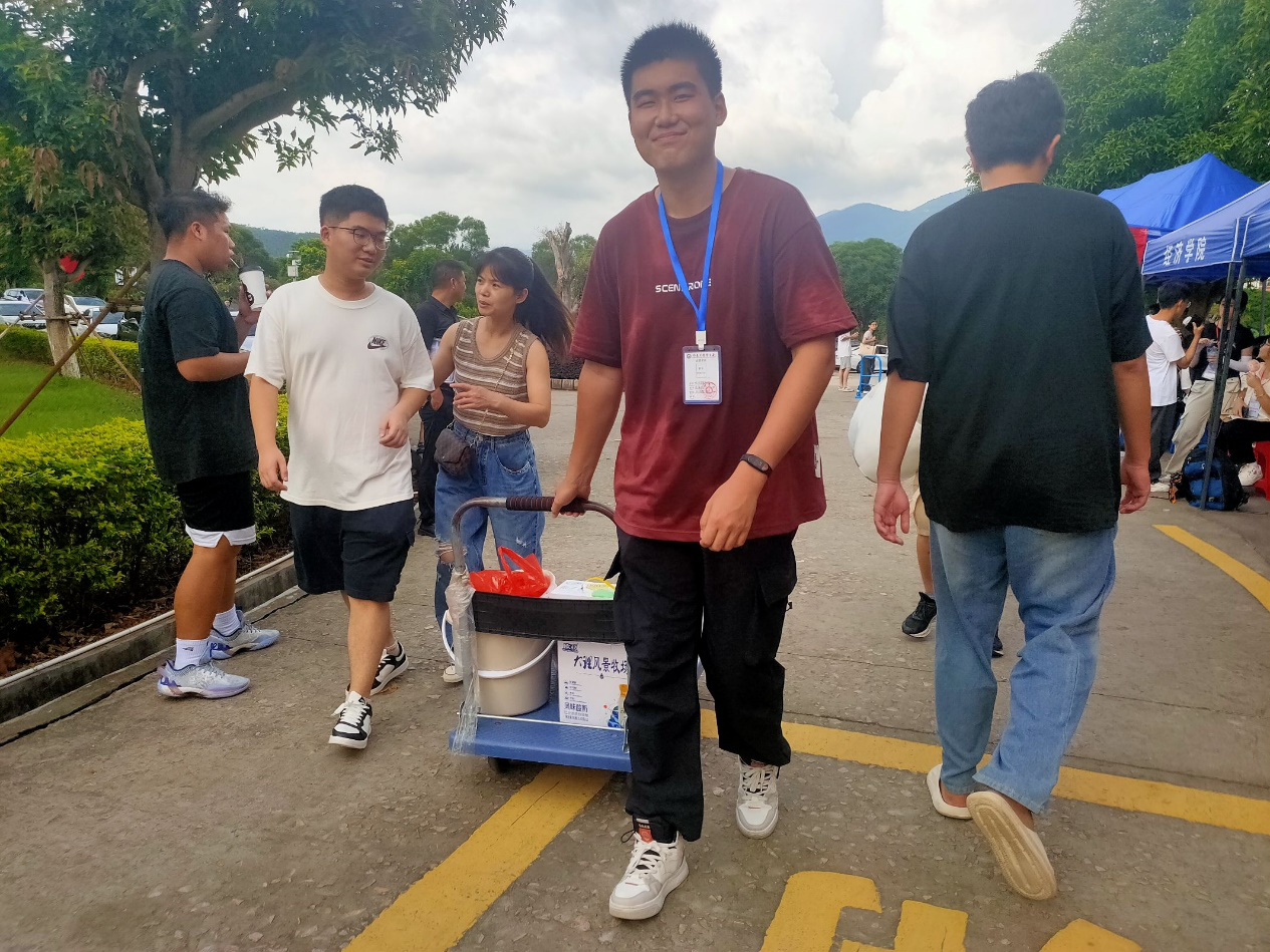 图2 九游体育官网学生党员志愿者帮新生搬行李
