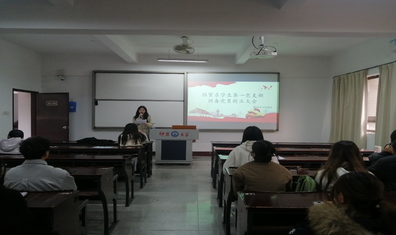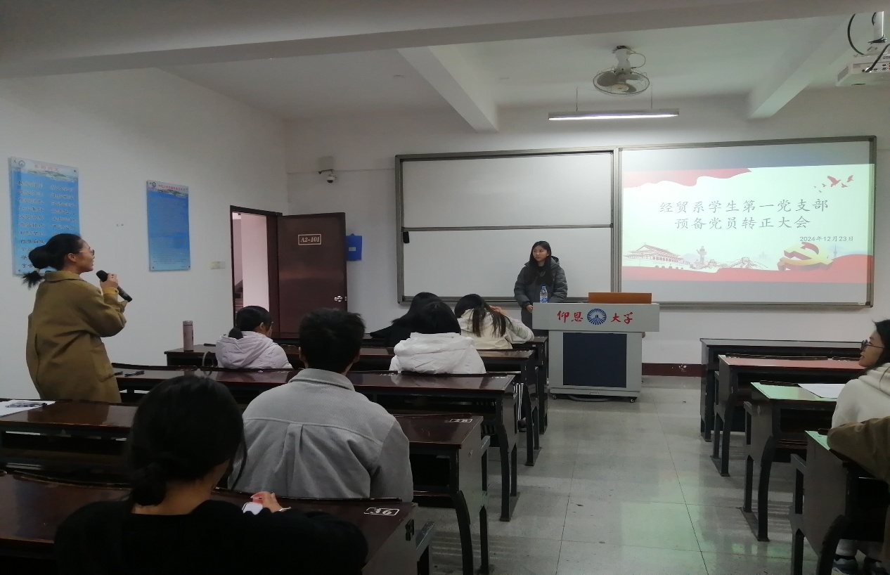 1223日下午,经贸系学生第一党支部于仰恩楼A2-101召开预备党员转正大会。