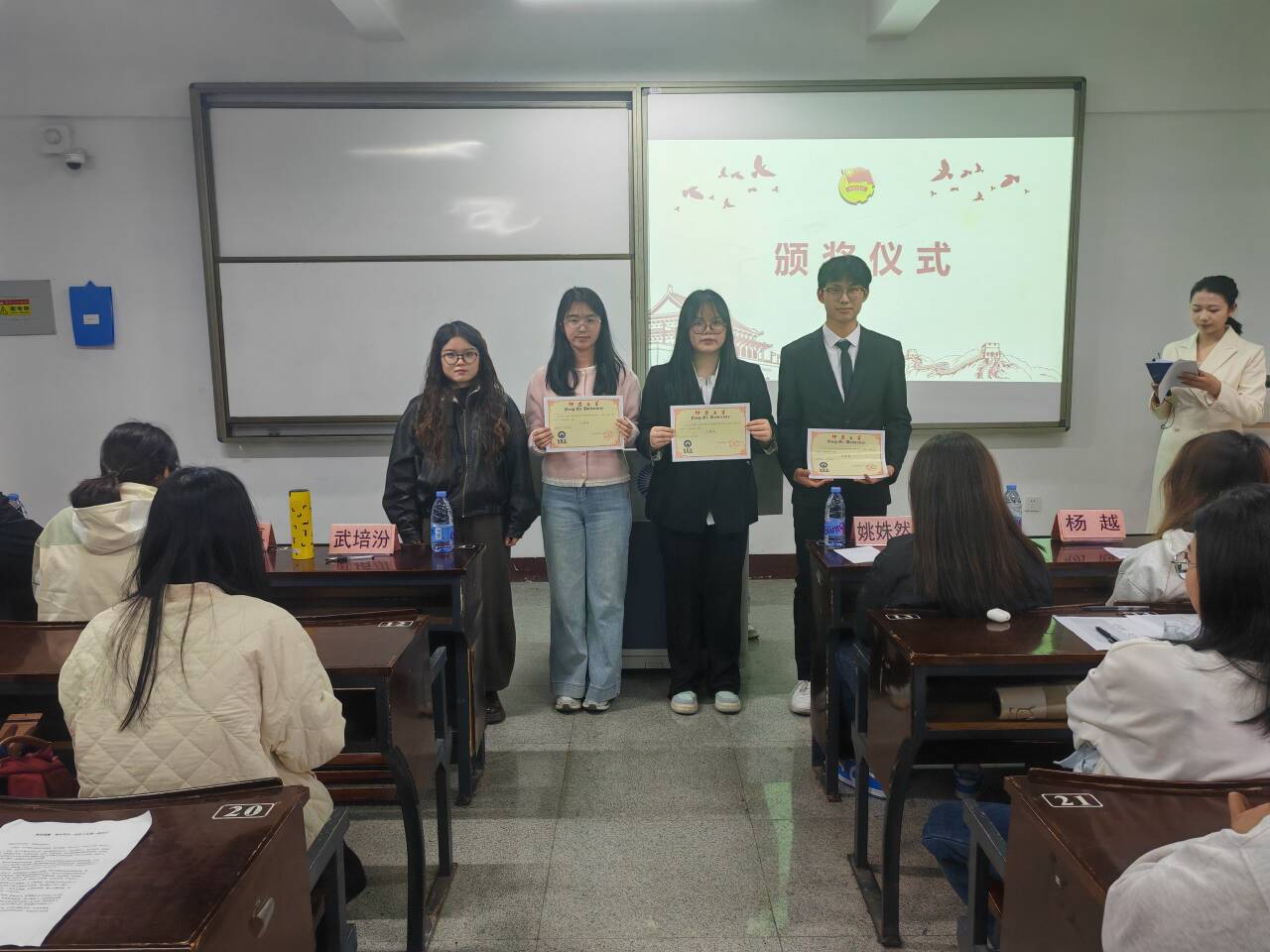 经过激烈角逐,评委们依据演讲内容、语言表达、舞台表现等方面进行综合评分,最终评选出一、二、三等奖及优秀奖。演讲比赛大获成功。