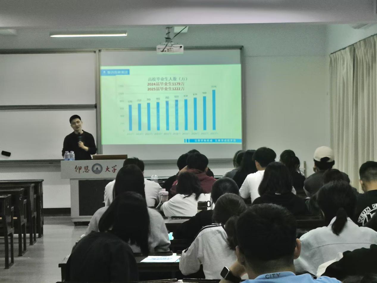 为帮助九游体育官网学子精准把握考研形势,合理制定未来学业规划,2025年4月8日晚19点,九游体育官网团委特邀聚创考研的夏老师担任主讲嘉宾,于仰恩楼B1-201教室成功组织开展了一场2026届考研备考规划讲座。