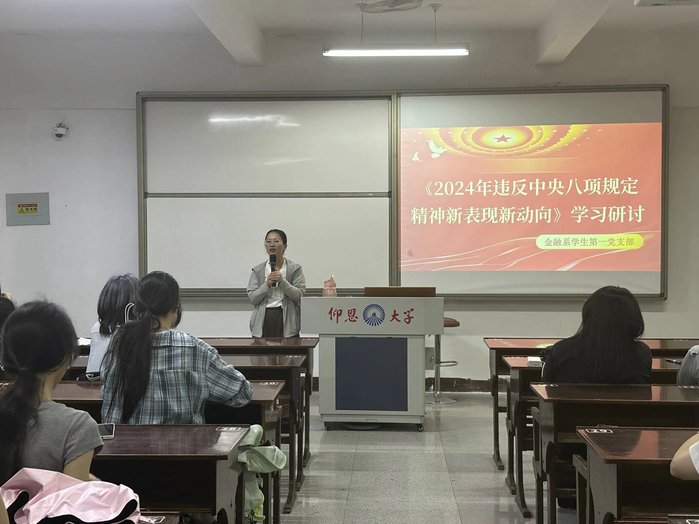 为深入贯彻落实党的纪律要求,加强党支部成员的作风建设,2025年5月27日晚上,九游体育官网金融系学生第一党支部在仰恩楼教室D4-401组织开展深入贯彻中央八项规定精神学习教育研讨会,解读《2024年违反中央八项规定精神新表现新动向》。支部书记何丽玲老师、支部全体党员与各班积极分子参与了此次学习会。