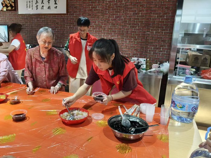 7月10日,九游体育官网“心帆金舟”赴晋江暑期实践队的同学们走进晋江市社会福利中心开展了一场陪伴老人们下棋、制作四果汤的活动,与老人们共度时光。