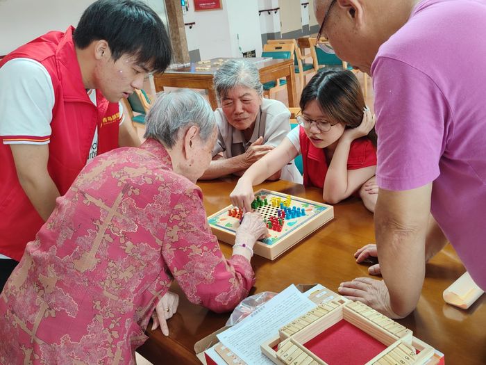 活动开始,队员们以“色彩拍掌”的小游戏调动爷爷奶奶们的积极性,随后陪伴他们下不同的棋,爷爷奶奶们全神贯注地盯着棋盘的走势,棋局的变化牵制着情绪的起伏。