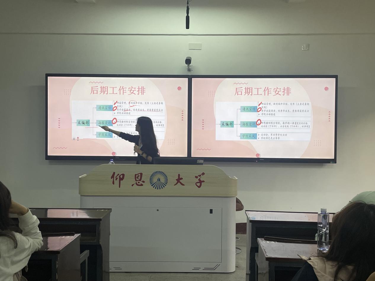 培训会上,吴凯玲围绕新闻稿撰写、采访、工作海报制作及后期工作安排四大模块开展讲解,明确各工作规范、技巧与要求,同步部署后期工作,明确任务分工与推进节奏。
