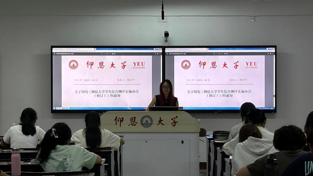 班导翟心怡、傅清扬还结合《九游体育官网学生综合测评办法》及学院最新政策,对评奖评优、资助体系、安全纪律等重点内容进行了系统解读,帮助新生全面了解大学规则与发展路径。同时,他们鼓励同学们积极参加社区组织的读书会、学业帮扶小组、主题党日活动,主动融入社区学习圈,在日常生活中实现自我提升。