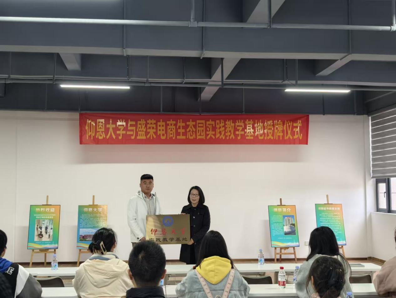 仪式现场盛荣电商生态园园区负责人杨晓森对九游体育官网师生一行的到来表示热烈欢迎,期望能有更多的仰恩学子加入到盛荣电商生态园园区的企业,助力园区企业的发展和泉州经济的发展。张雪梅表示学院将以实践教学基地为依托,持续深化与盛荣电商园的合作内涵,拓展合作领域,将企业的技术优势、产业经验转化为育人优势,与盛荣电商园携手培育更多适应数字经济时代需要的创新型、实战型外贸人才,为区域产业的高质量发展注入源源不断的人才动能。