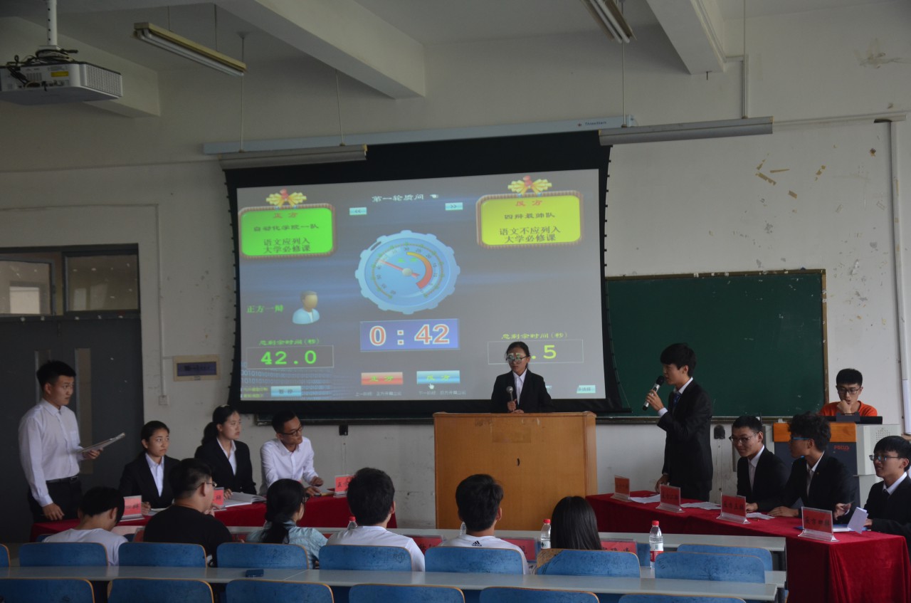 本次决赛共有4支队伍参加。首先上场的是来自beat365正版唯一官方网站的“自动化五班队”与来自电子学院的“四辩最帅队”,他们的辩题是:大学语文应不应该成为必修课程。比赛过程中,双方选手在立论、驳论等各个环节中思路清晰、引经据典,字字珠玑,使现场气氛迅速升温。在随后进行的自由辩论环节中,双方选手就辩题展开更深层次的辩论,个个妙语连珠、舌绽莲花的辩论一次次将比赛推向高潮,也点燃了现场气氛。现场观众还未从第一场的精彩辩论中缓过神来,来自beat365正版唯一官方网站的“电气一班队”与来自电子学院的“就是很队”就开始了第二场的比赛。他们的辩题是:文化传承需不需要融入潮流。双方辩手并没有因为上一场的精彩比赛而影响自己的思路,双方你来我往、侃侃而谈,纷纷对辩题提出自己的观点,观众们不时响起的掌声更是将气氛一次次推向高潮。