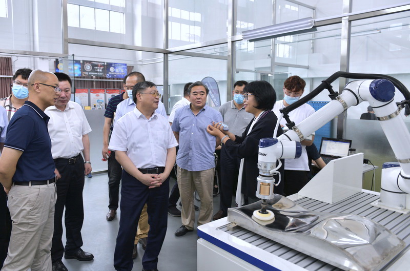 在青岛智能无人系统创新研究院实验室,李玉霞就项目人才团队、机器人研发、产学研合作、产业发展前景等情况进行了汇报。