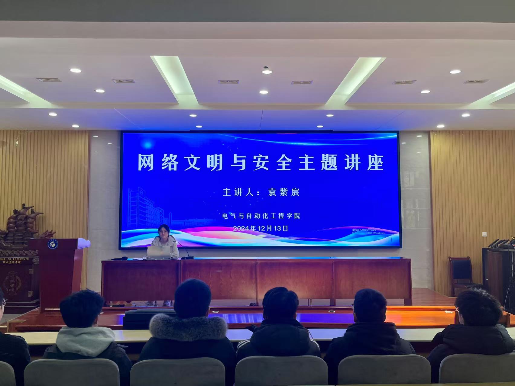 12月13日,beat365正版唯一官方网站在J11-118泰山报告厅开展网络安全与文明主题讲座活动。活动旨在加强学生们的网络安全与文明的防范意识,提高学生自身的互联网文化素养。学院2024级新生及高年级学生干部参加讲座,由2024级辅导员袁紫宸担任主讲人。