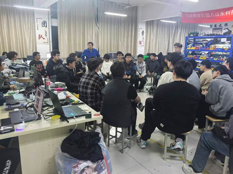“动员会让我们对备赛任务有了更清晰的认知,也感受到了团队并肩作战的力量。” 低年级队员表示,将快速融入备赛节奏,提升实战能力。指导教师高正中强调,此次动员会为战队凝聚了向心力,后续将持续跟进备赛进度,助力战队在联盟赛中展现山科大学子的技术实力与协作精神。