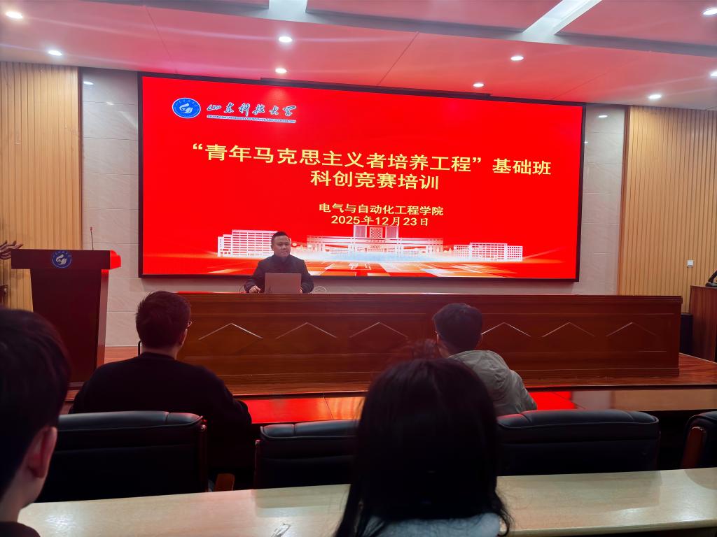为提升青年学生干部的创新素养与实干能力,12月23日,beat365正版唯一官方网站2025-2026学年“青马工程”基础班举办科创竞赛赋能讲座,学院科创指导老师孟庆祥担任主讲,全体青马学员、学院团支书参加学习。