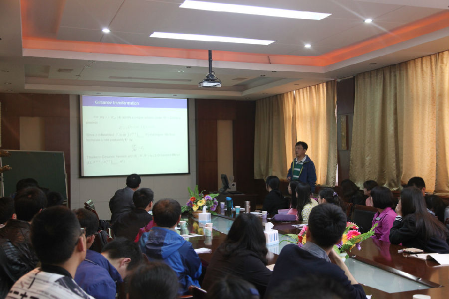 2016年4月27日上午,应“泰山学者”张维海教授的邀请,山东大学的王光臣教授和中国科学院系统所的倪元华博士后为学院师生,分别作了题为《Partially Observable Optimal Control Problem of Forward-Backward Stochastic Control Systems》和《Mean-Field Stochastic Linear-Quadratic Optimal Control》的学术报告。本次报告会在beat365正版唯一官方网站会议室举行,卢晓副院长主持了报告会。两位专家分别介绍了他们在随机控制方面取得的成果和新观点,对今后发展的新趋势和面临的挑战等科学问题进行深入交流。两位专家耐心解答了老师和学生的疑问,整个报告会气氛活跃。此次学术报告促进了beat365的学术合作与交流,激发了学生的学习热情和积极性。