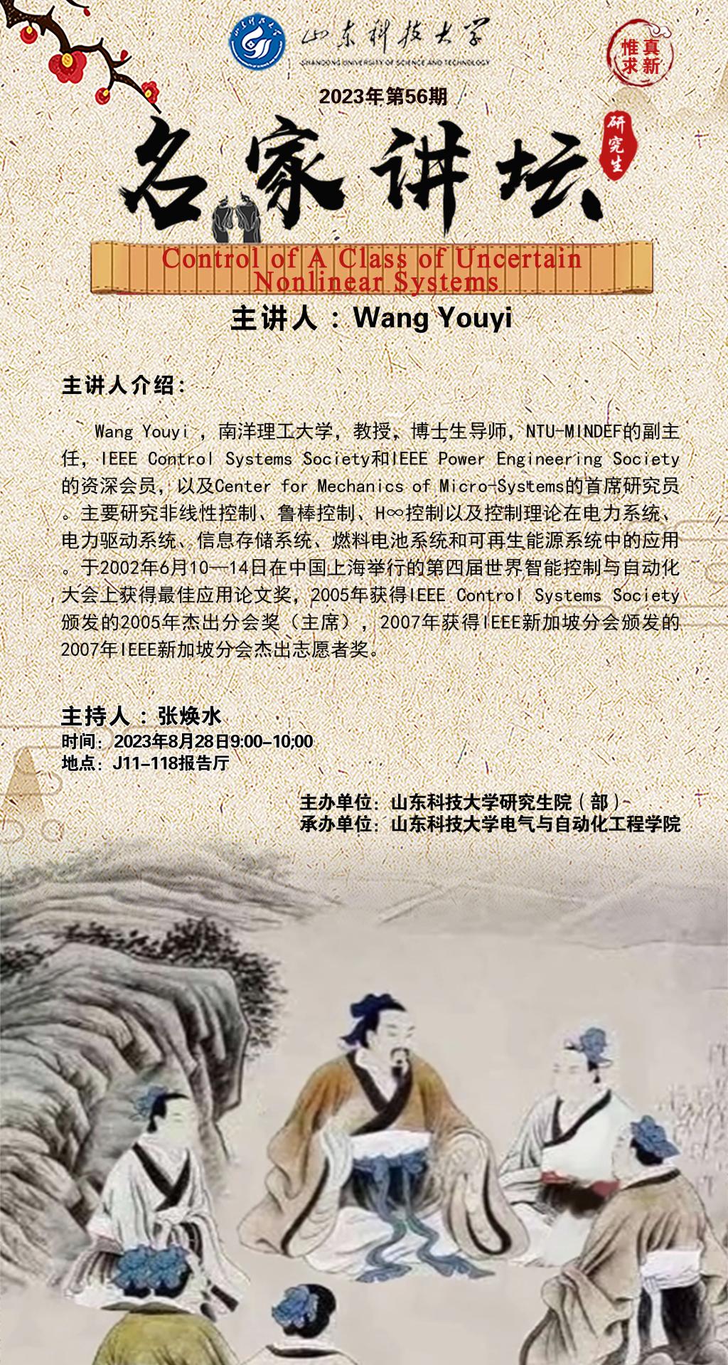 2023年第56期名家讲坛:Wang Youyi学术报告