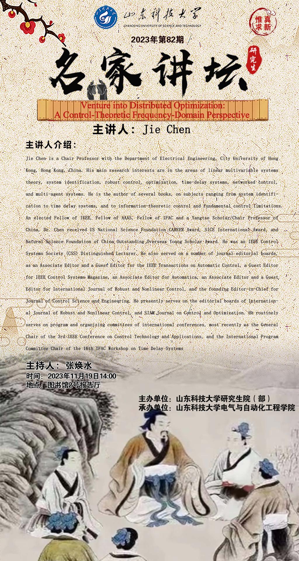 名家讲坛第82期:Venture into Distributed Optimization: A Control-Theoretic Frequency-Domain Perspective